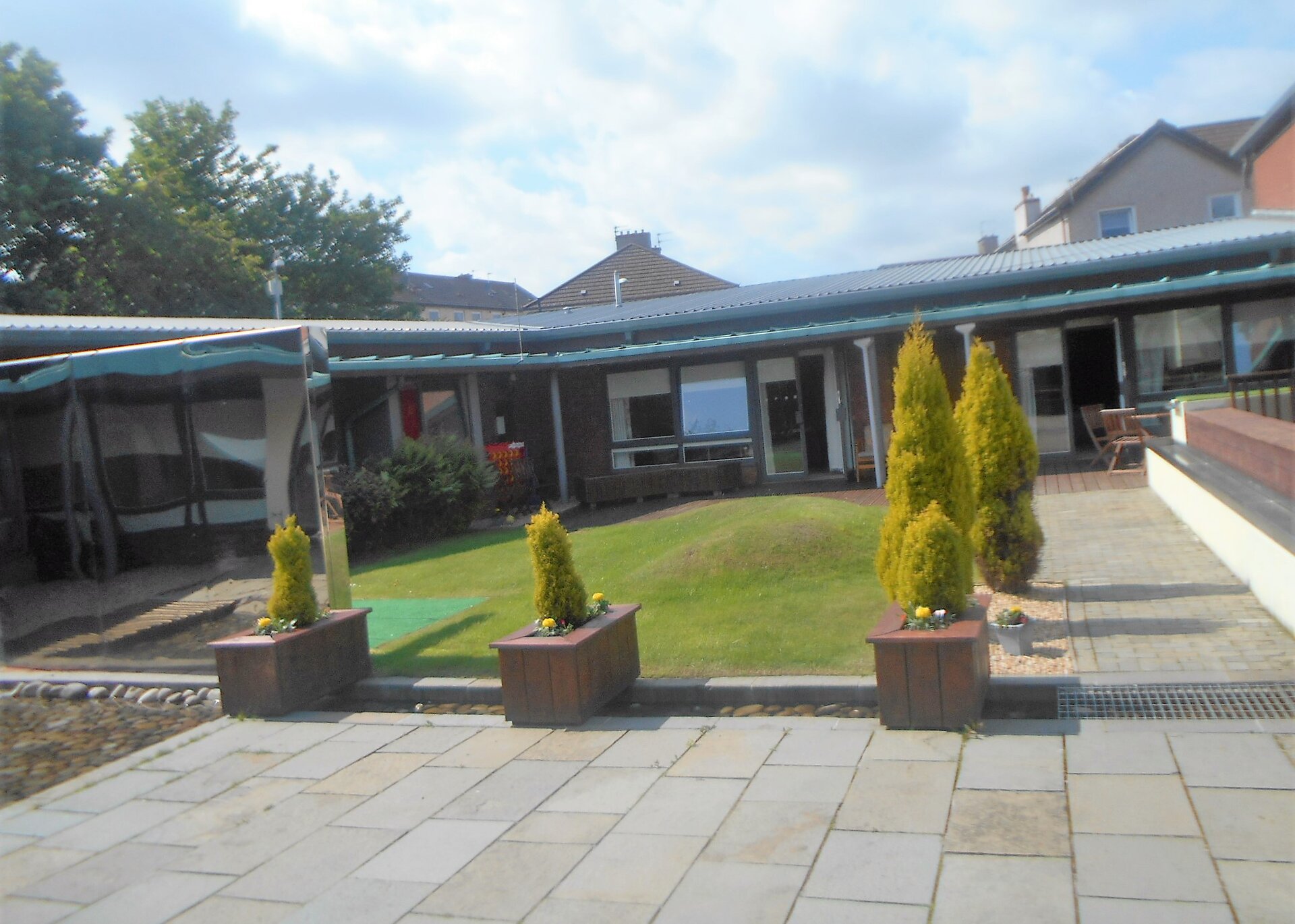We try hard to keep this garden area tidy and accessible for all at all times. During the course of the year, we have revarnished all of the decking, planters and seating. We have repainted the coloured wall and renewed the pump in the water feature at a cost of around £800.